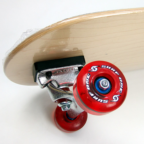 当モデル搭載のデッキはSK8Boardersのオリジナルデッキとなります。カリフォルニアのサーファーの間でテストライドされ何度も修正を入れながら制作した自信作となります。薄っすらと入ったコンケーブと幅広のデッキはあなたの足をスッポリと包み込むように、しっかりとホールドしてくれます。又、当デッキのノーズ側には、トラックホールが6つ空いており、この為ちょうどトラック1台分前後にずらせて乗ることも可能となります(ニュースクール)。